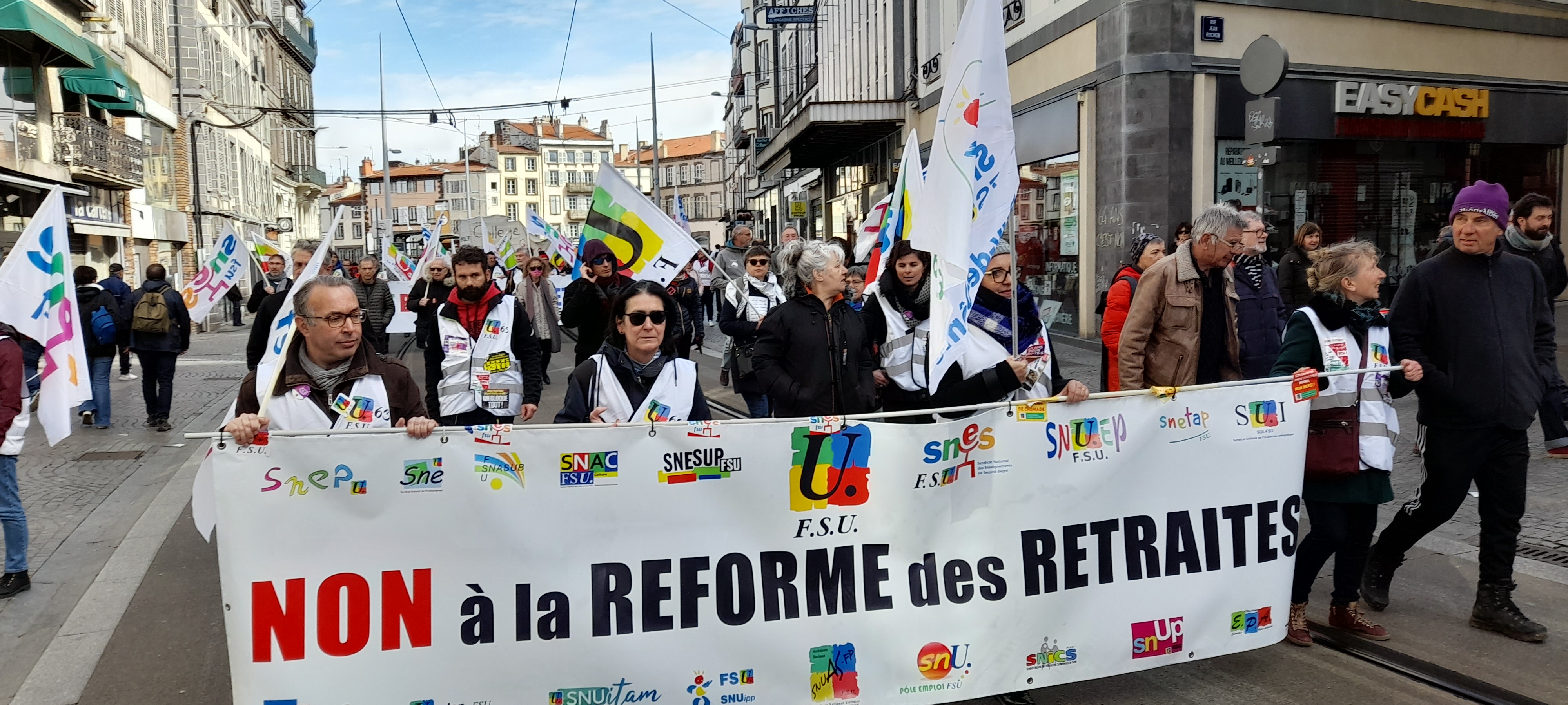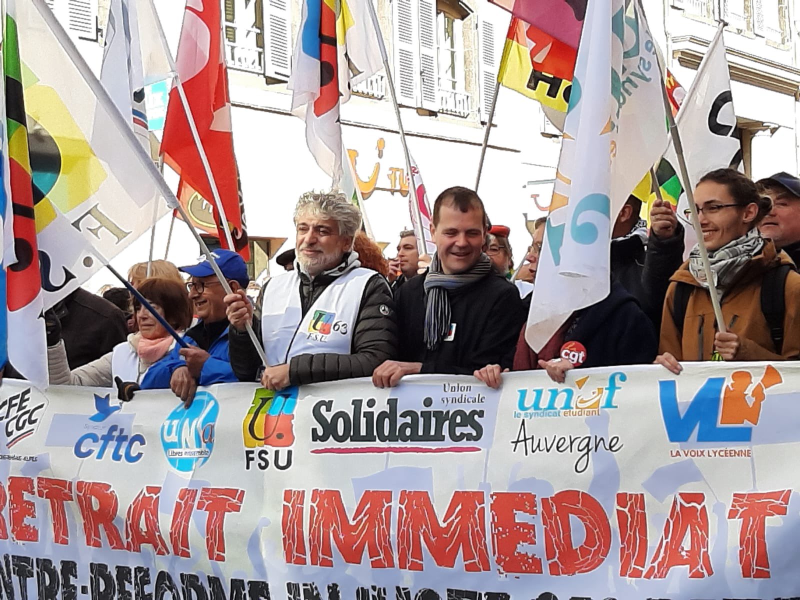 Très fiers d'avoir nos camarades à nos côtés dans la manifestation clermontoise @SNESFSU @FsuNationale #FSU63 @SVenetitay @benech_coralie @GerardinSigrid @guislainedavid @bleveder @BenoitTeste #64AnsCestToujoursNon #Manif28Mars #OnLacheRien #OnVaGagner #ReformeDesRetaites https://t.co/bz3ukMeYoq