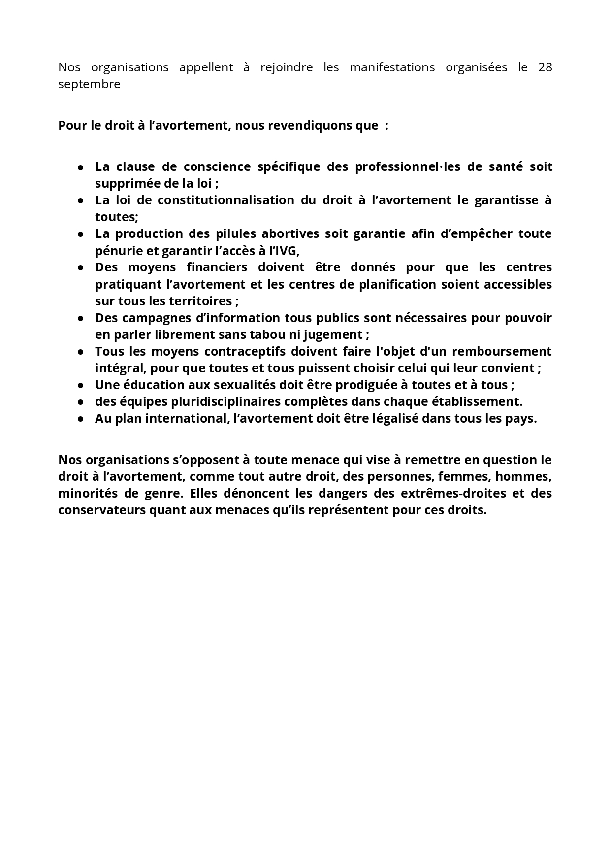 Nos organisations appellent à rejoindre les manifestations organisées le 28 septembre.