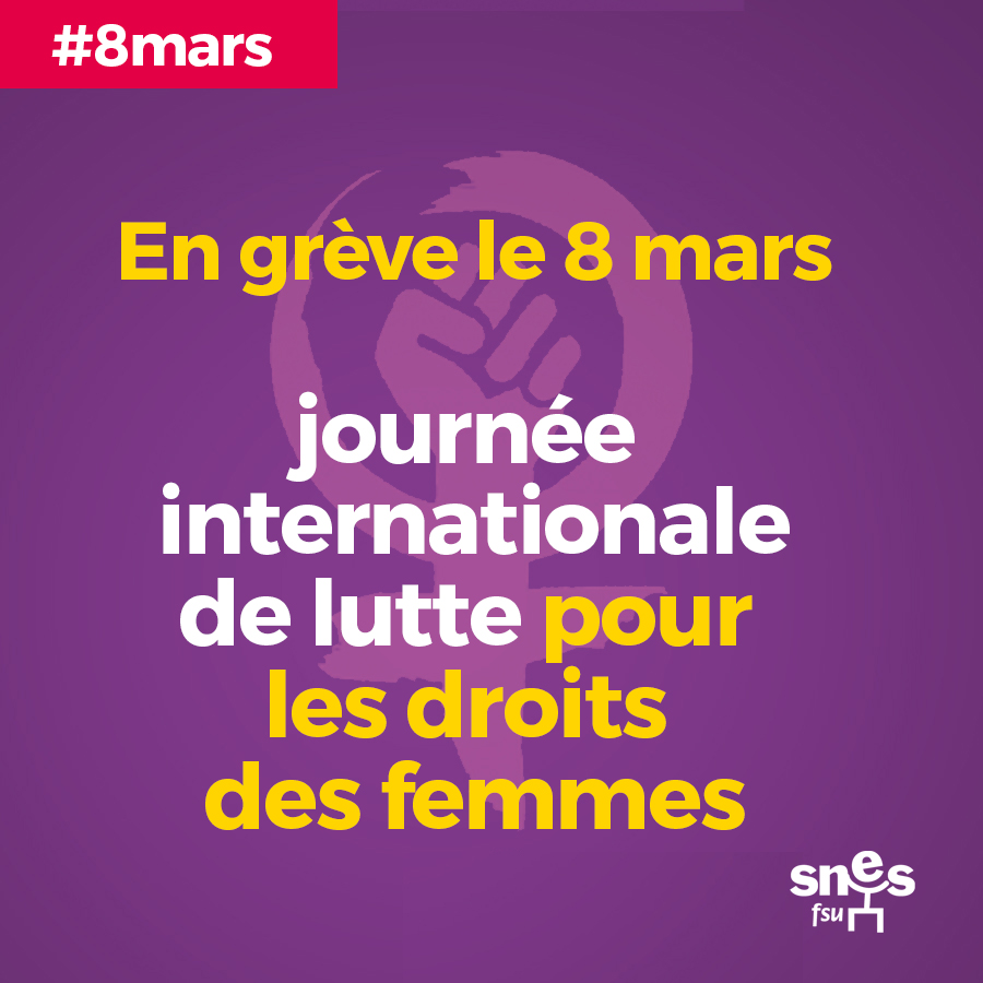 Le 8 mars, toutes et tous en grève et en manifestation pour la journée internationale de lutte pour les droits des femmes et pour l’égalité dans tous les lieux de travail.