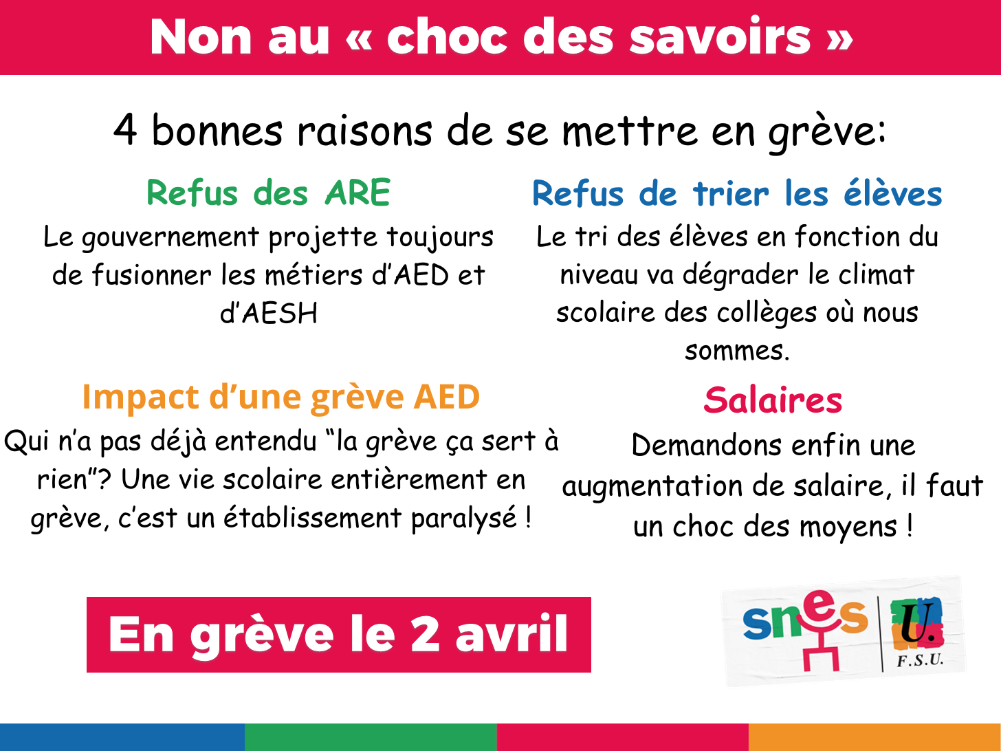 Vous êtes ici : Accueil Carrières / métiers Santé / Ecologie AESH, AED AED : toutes et tous en grève le 2 avril ! 29 mars 2024 Carrières / métiers Santé / Ecologie AED : toutes et tous en grève le 2 avril ! Imprimer l'article