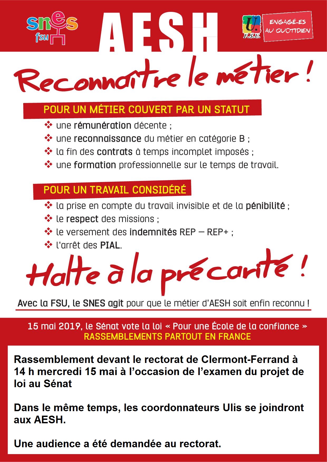 Rassemblement devant le rectorat de Clermont-Ferrand à 14h.