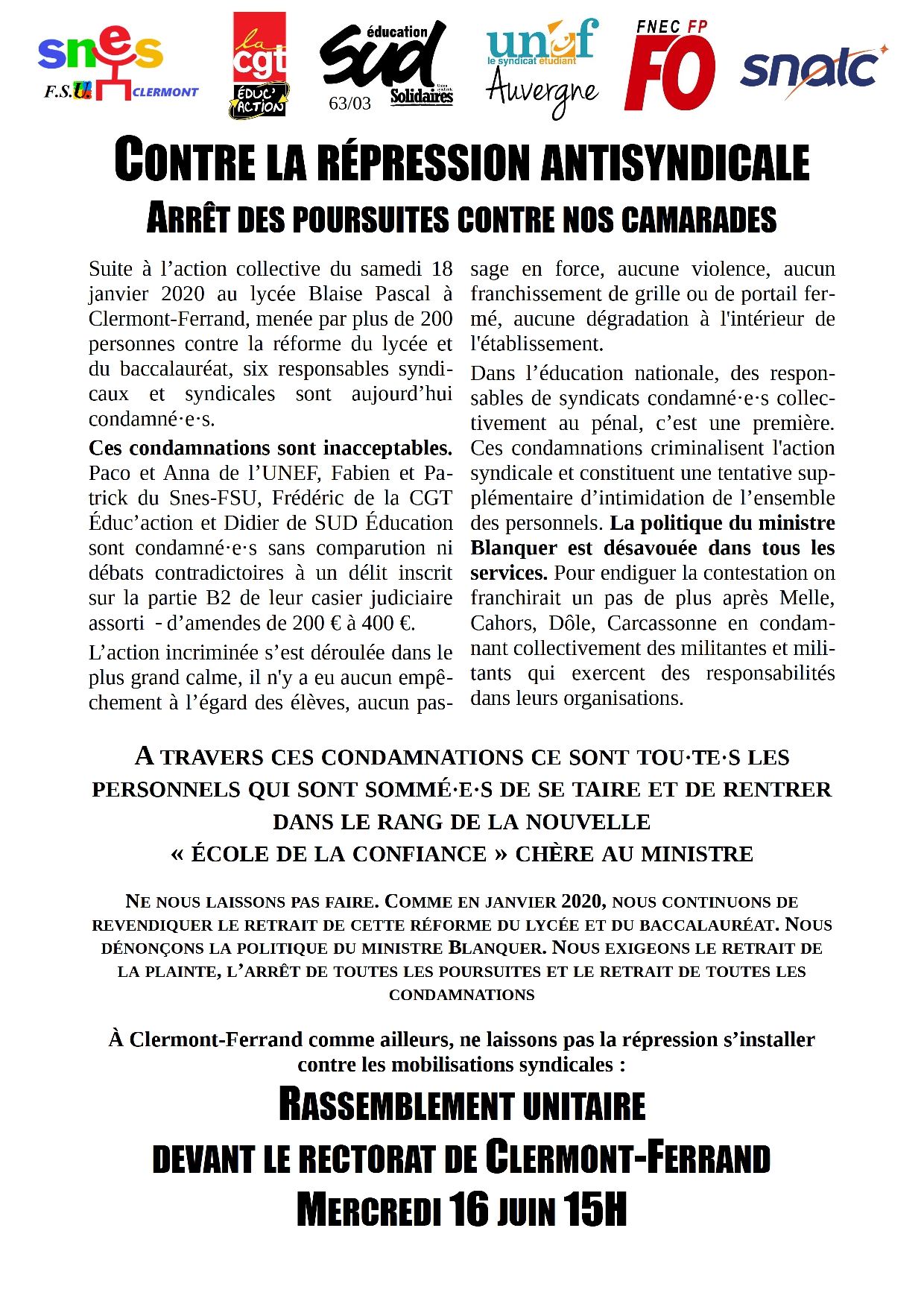 A l’appel du SNES-FSU, de SUD éducation, de la CGT Educ’action, de l’UNEF, de FO et du SNALC.