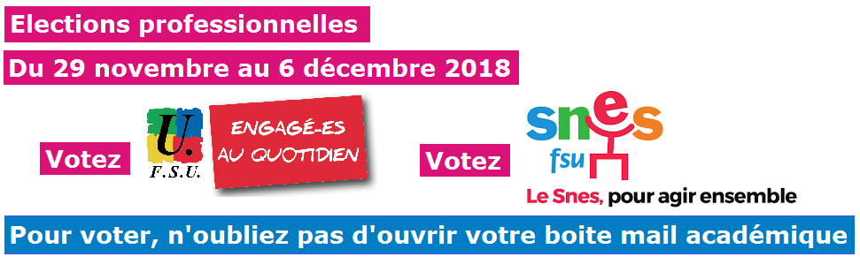 Retrouvez toutes les infos sur les élections professionnelles sur le site dédié du SNES-FSU : https://www.elections2018-education.fr