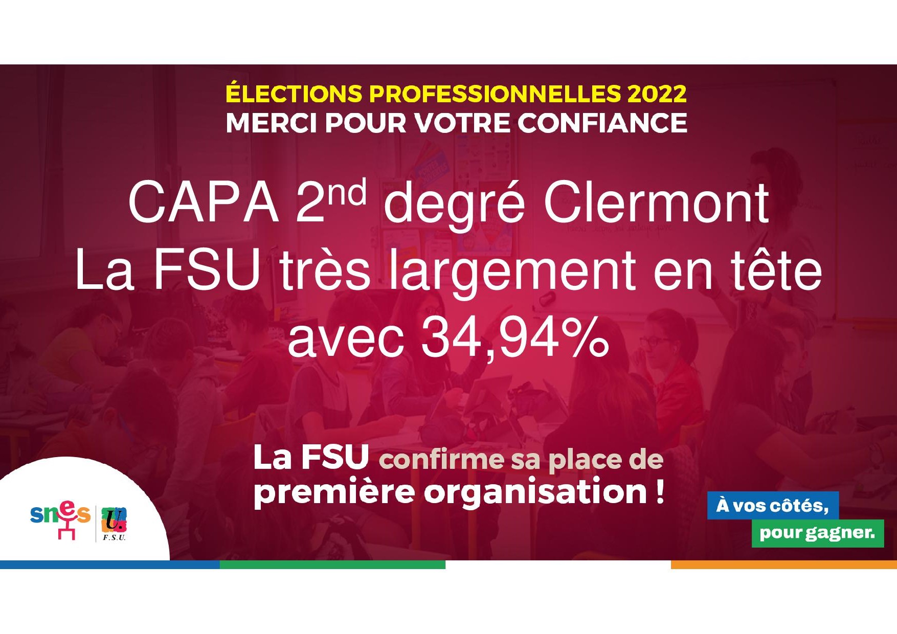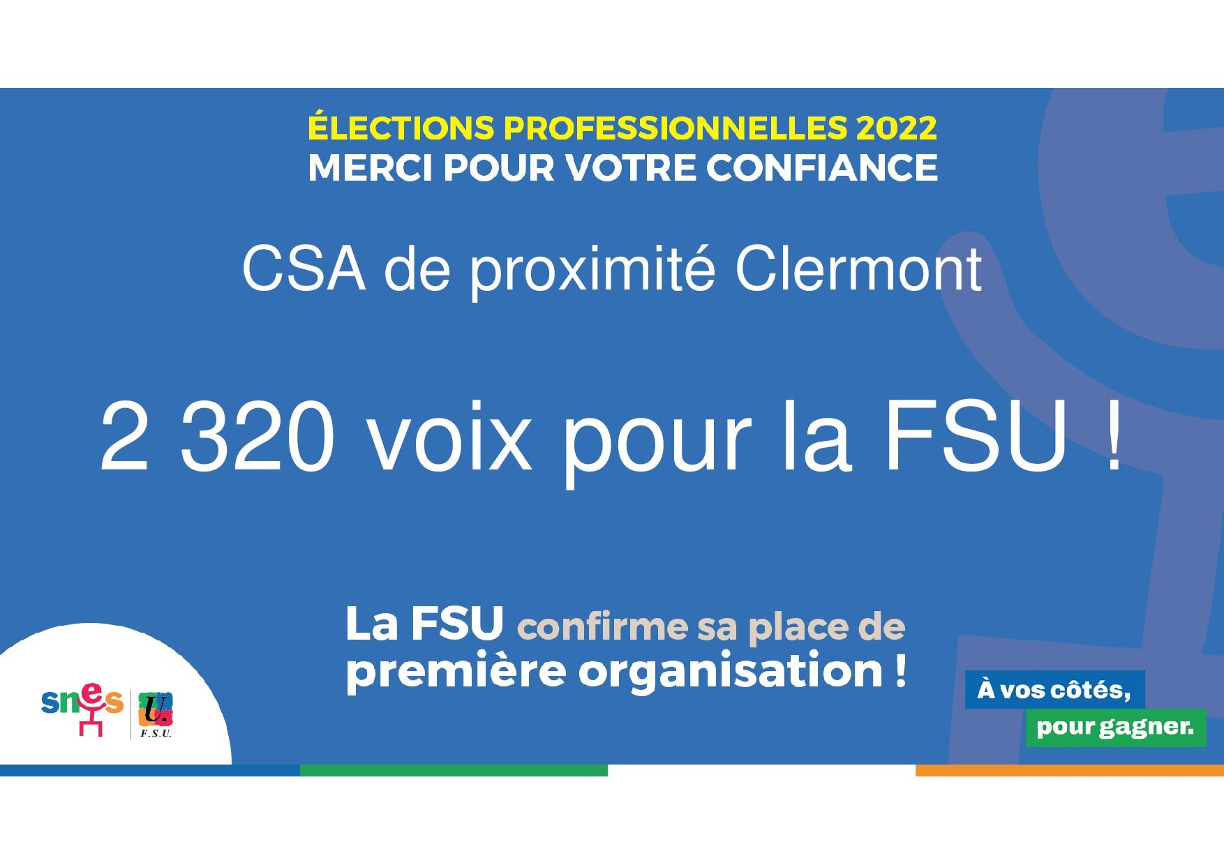 Le SNES-FSU Clermont remercie chaleureusement toutes celles et tous ceux qui lui ont accordé leur confiance en votant et en faisant voter massivement pour la FSU.