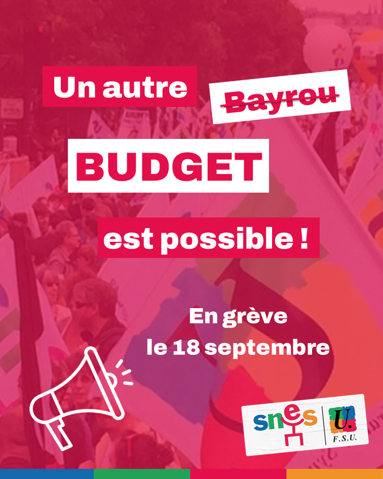 François Bayrou n’est plus premier ministre, mais c’est bien l’orientation des politiques menées qu’il faut changer ! Une rupture budgétaire évidente avec les politiques qui ont asphyxiés les services publics, en particulier le l’Education nationale, notamment le 2d degré. Il faut aussi un nouvelle orientation en matière de politique éducative : en finir avec les réformes de tri social (Choc des savoirs, ParcourSup, lycée Blanquer), revaloriser les personnels, améliorer les conditions de travail, conforter les personnels dans leurs métiers (à rebours des orientations sécuritaires données aux missions des CPE et AED ou du glissement vers des missions de santé pour les PsyEN) et obtenir un statut de fonctionnaires pour les AESH.