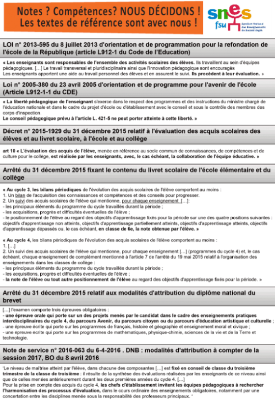 le SNES-FSU appelle les collègues à refuser de se laisser imposer des grilles de compétences : aucune validation d’aucun item tiré du socle ni aucune grille de compétences ne sont obligatoires, et à aucun niveau d’enseignement.