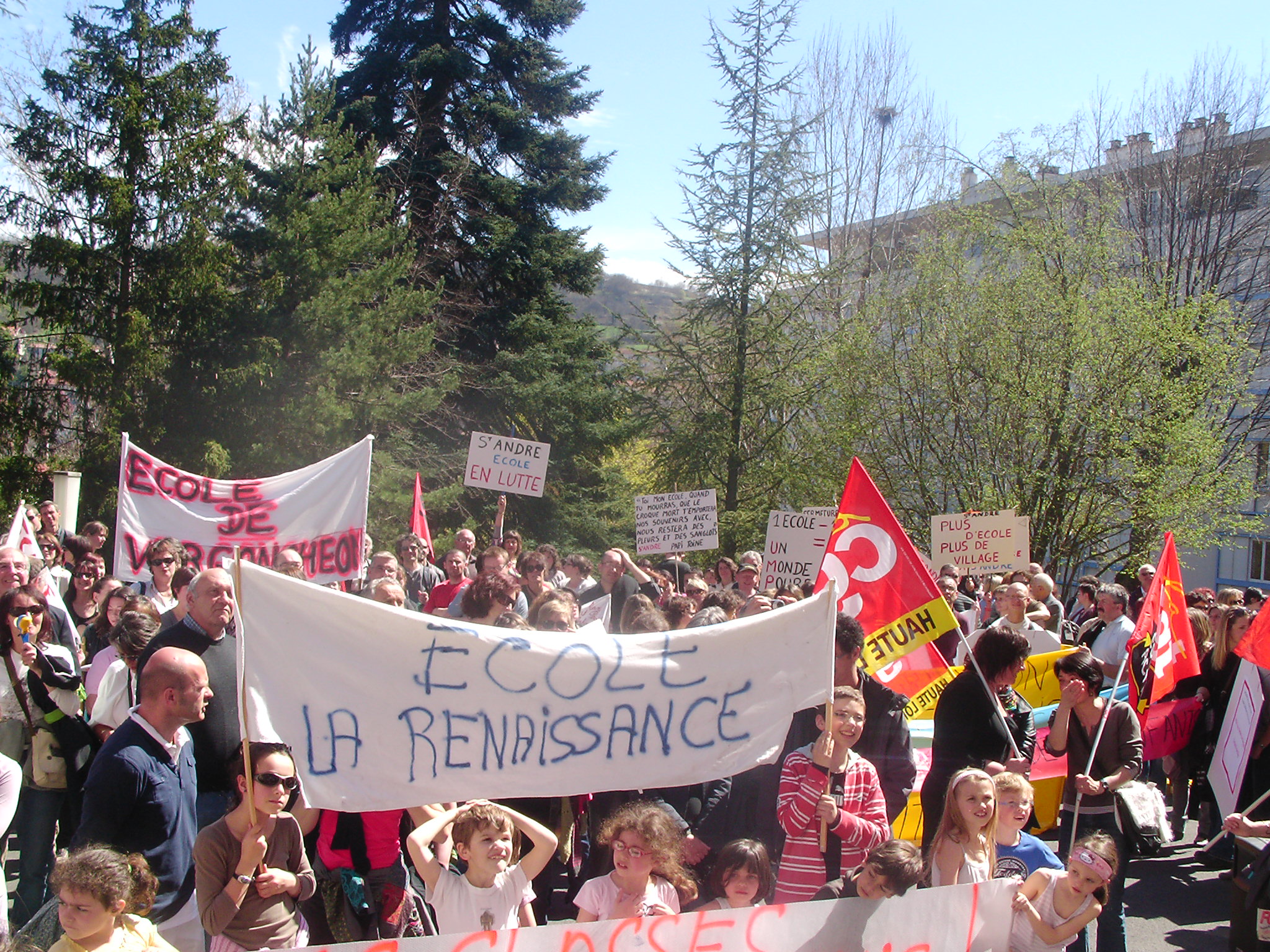 Ce fut gai, avec la juxtaposition des enfants menant grand bruit, comme dans les cours de nos écoles, les parents fortement agacés et qui nous demandaient encore au nom de quelle logique ils vivaient ces suppressions de postes, les naïfs !!!, et les collègues, de quelque syndicat qu’ils soient, rassurés de voir que "pour une fois", ils ne sont pas les seuls qui réclament des moyens.