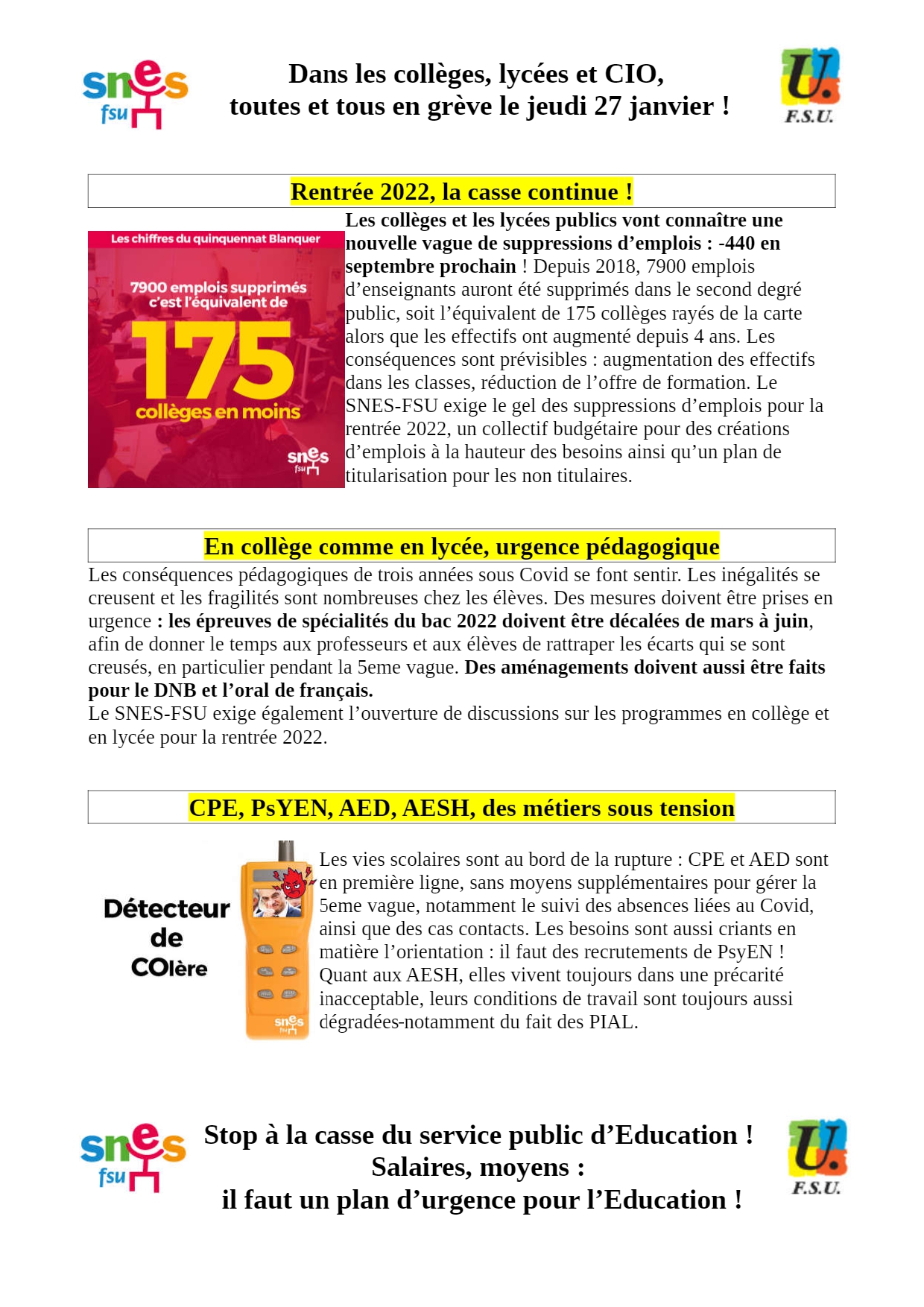 – [AESH] : voir communiqué intersyndical du 21 décembre 2021