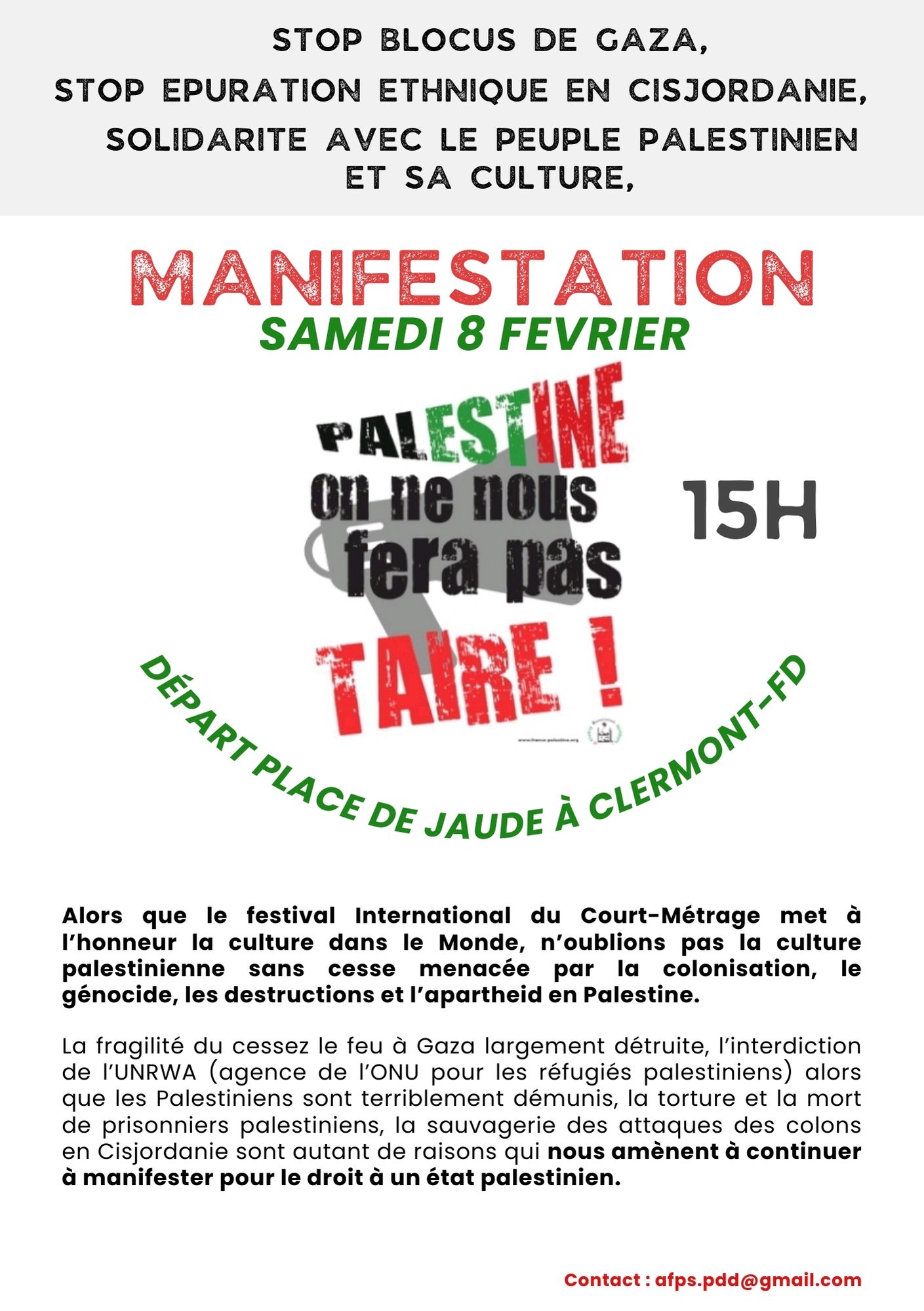 MANIFESTATION - SAMEDI 08 FEVRIER A CLERMONT-FD