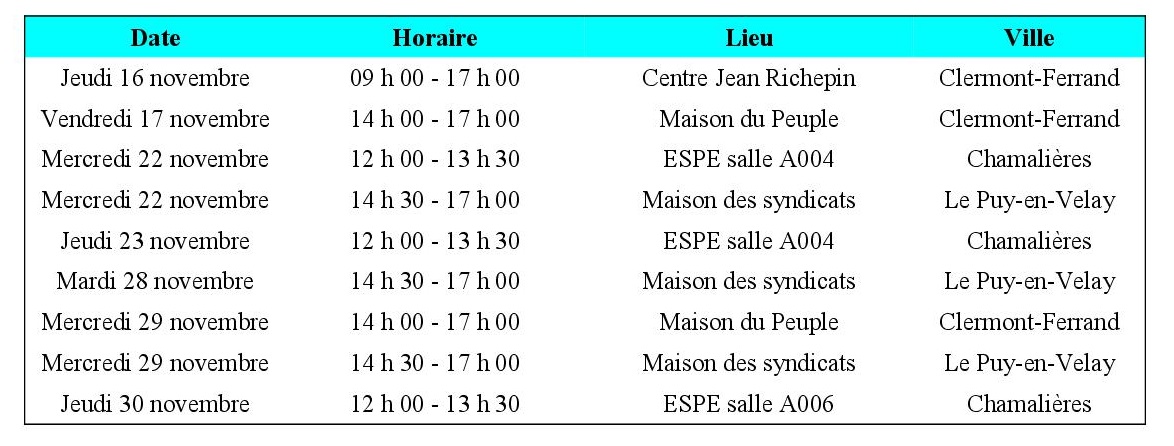 Rappel : stage « mutations-carrières » spécial stagiaires jeudi 16 novembre de 9 h 00 à 16 h 30 au Centre Jean Richepin à Clermont-Fd. Voir détails