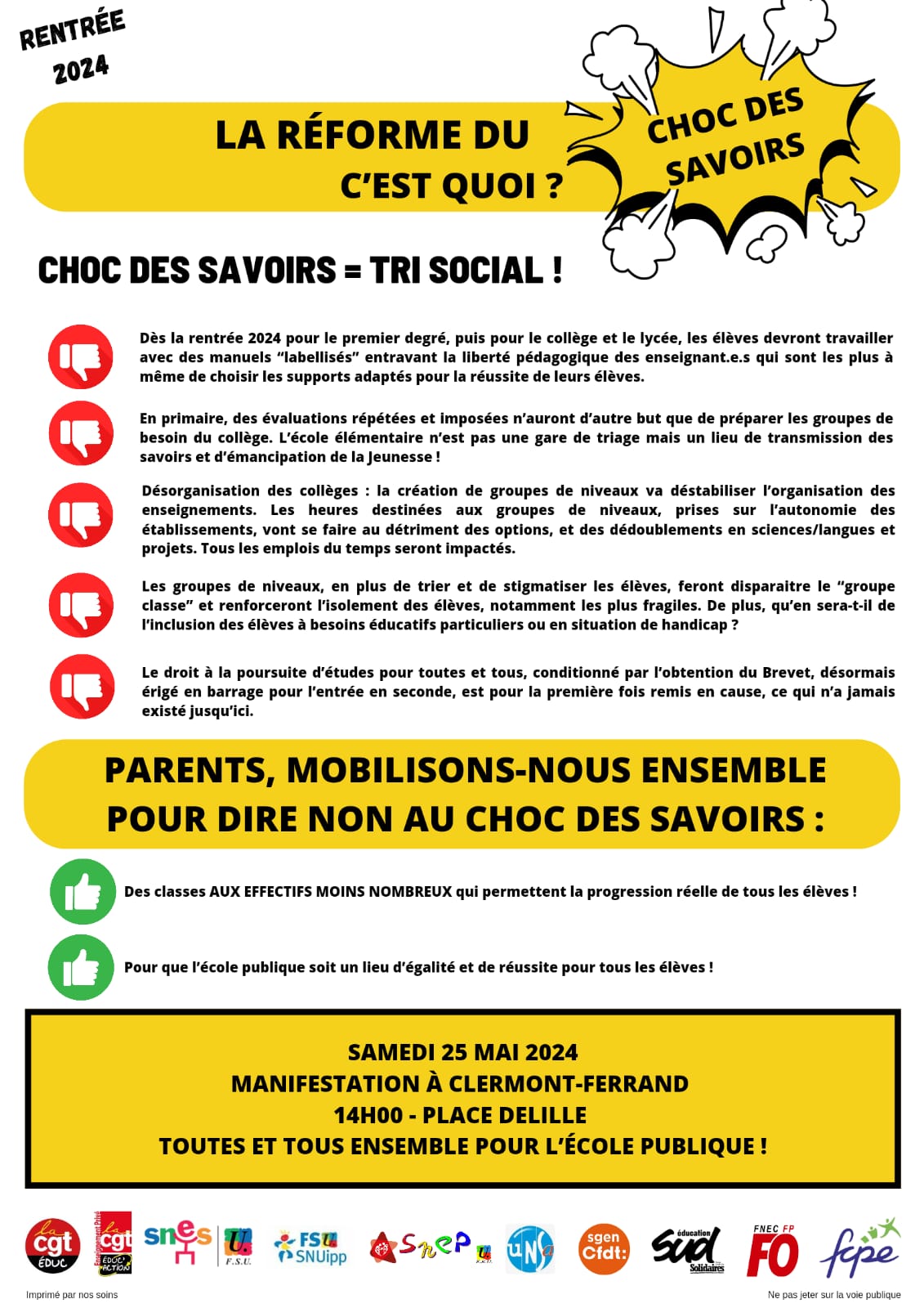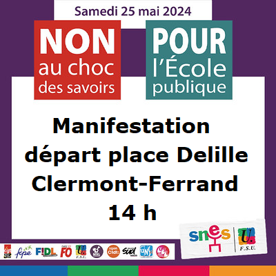 Manifestation à Clermont-Ferrand, départ 14h, place Delille, bd Montlosier, bd des Etats-Unis, place de Jaude