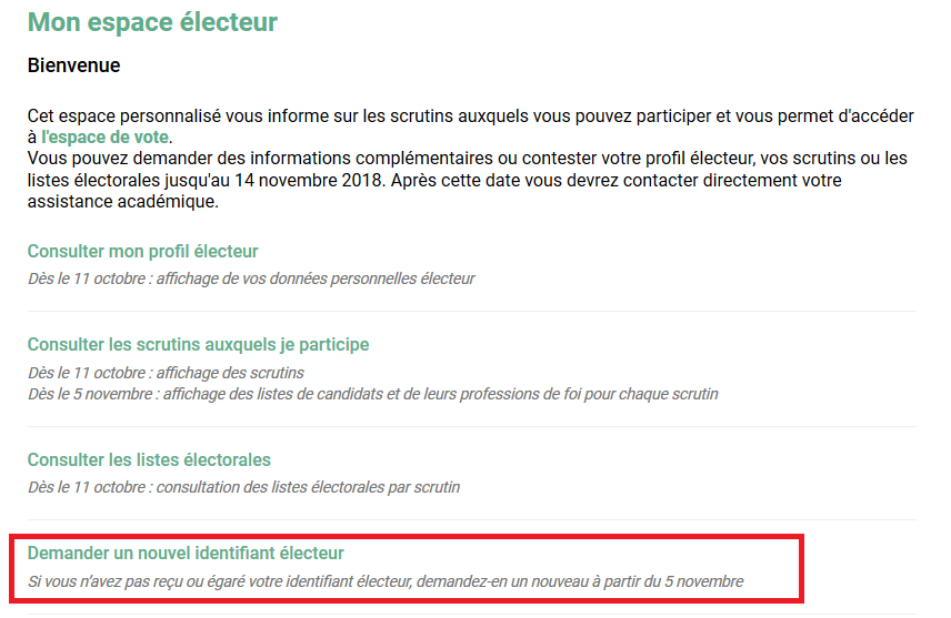 – cliquant sur « Demander un nouvel identifiant électeur »