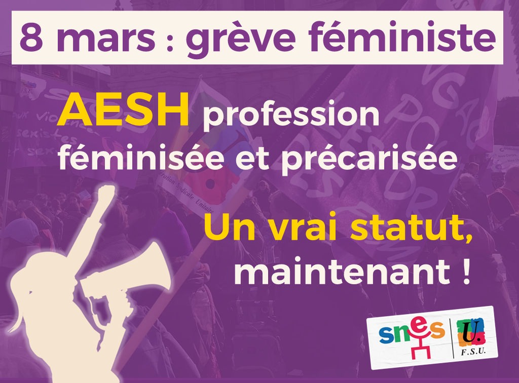 Nos métiers sont très féminisés, certains comme celui d’AESH dans des proportions très importantes (plus de 95%). Le fait que les AESH soient mentionnées explicitement est une bonne chose mais c’est loin d’être suffisant. La FSU a rappelé la nécessité d’une reconnaissance réelle de ce métier qui passe par la création d’un vrai statut de catégorie B, l’attribution de temps pleins et l’augmentation des salaires.