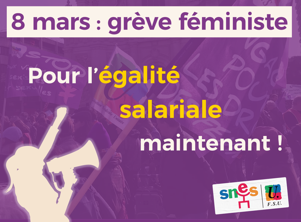 Le RSU (rapport social unique) qui contient de nombreuses données genrées, comme nous le demandions, doit être un point d’appui, en lien avec le plan académique égalité, pour combattre les inégalités entre les femmes et les hommes, en particulier les écarts de salaire. Le SNES et la FSU veilleront à ce que ce plan académique soit opérationnel et permette de réelles avancées en faveur de l’égalité entre les femmes et les hommes et de la lutte contre les violences sexistes et sexuelles.