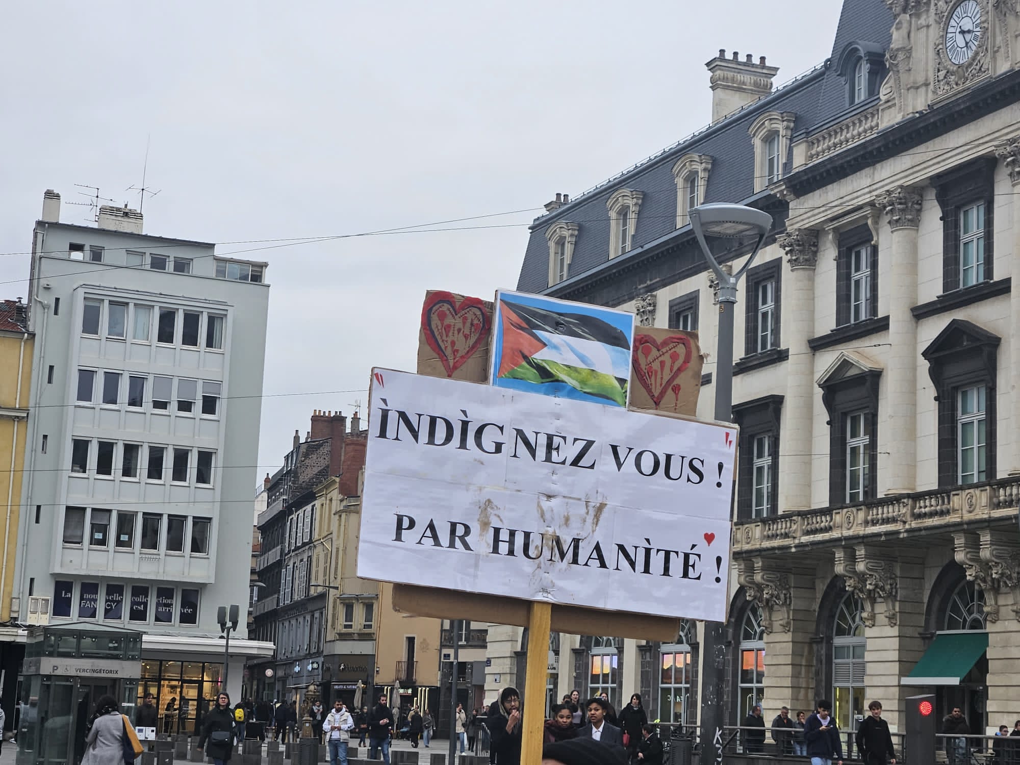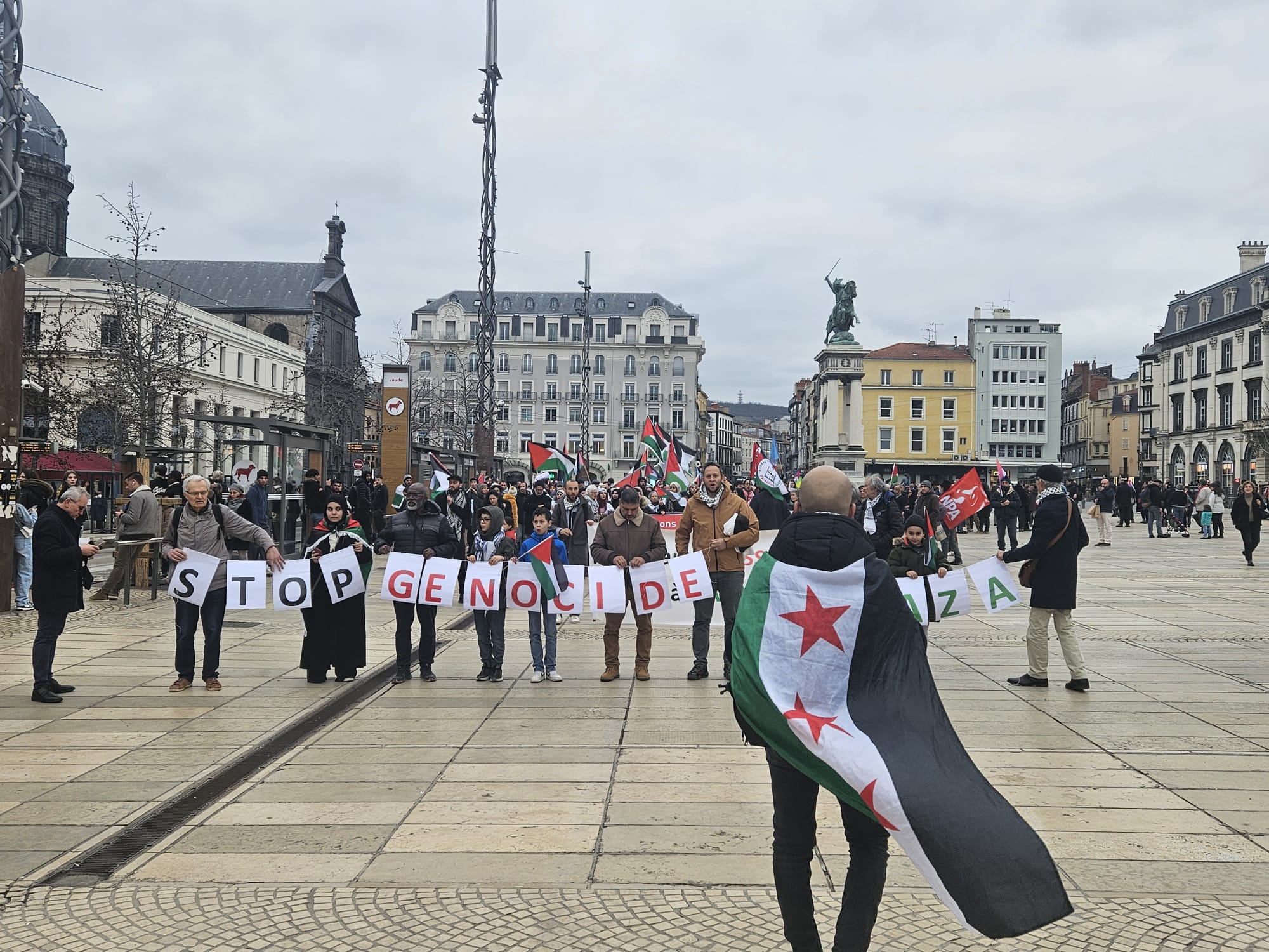 A Clermont-Ferrand, le Collectif 63 pour une Paix Juste et Durable appelle à se rassembler ce samedi 17 février à 15h00 Place de Jaude, pour demander :