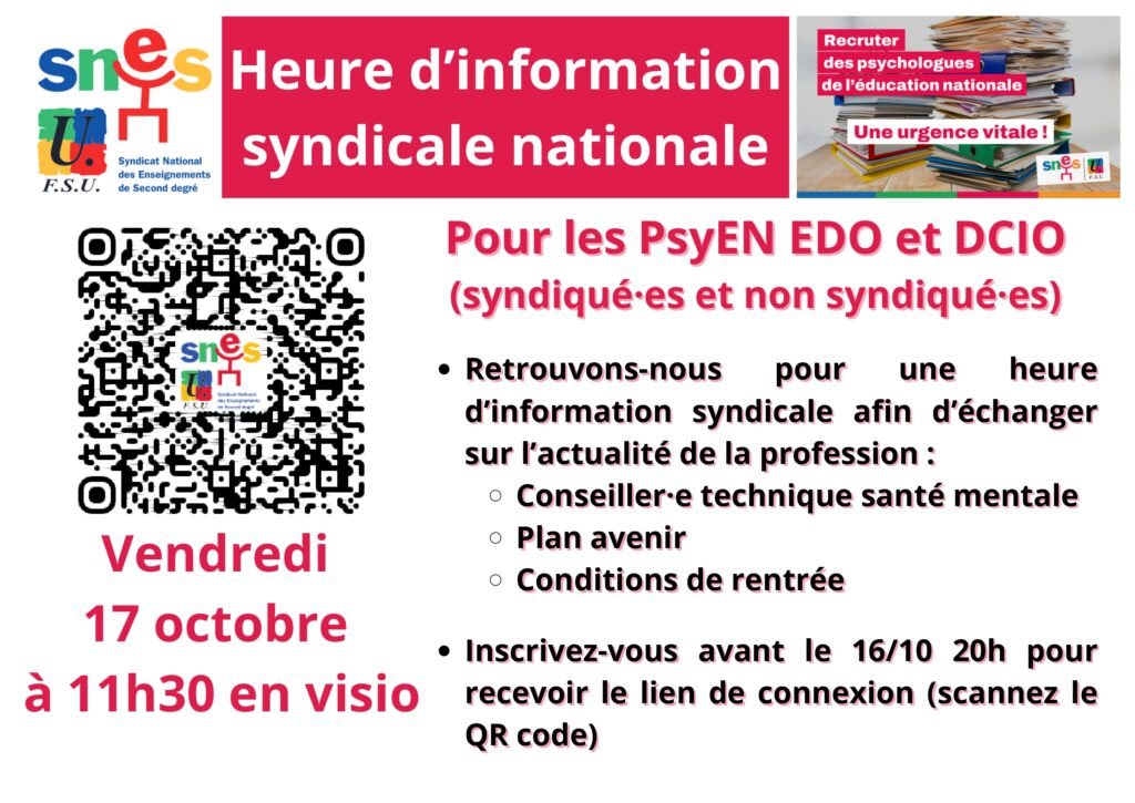 Cette réunion est ouverte à toutes et tous, titulaires, non-titulaires, stagiaires, syndiquées et non syndiquées.