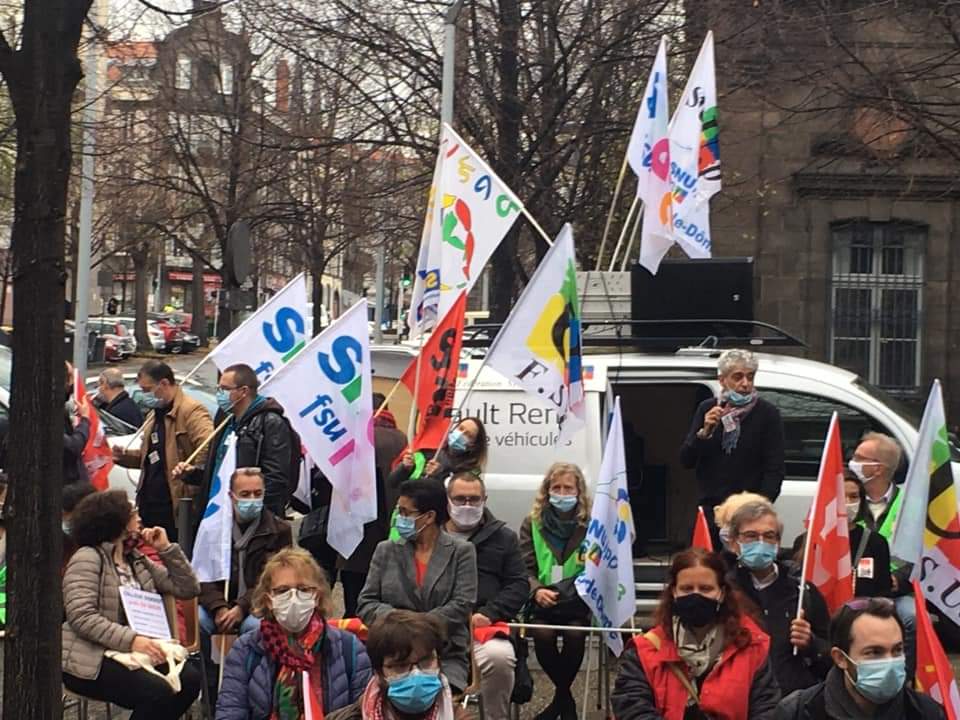 Le rassemblement de ce mardi 10 novembre à l’appel de l’intersyndicale FSU, Sud Éducation, Fnec-FP-FO et CGT Éduc’action du Puy-de-Dôme, avec le soutien de la FCPE, a réuni environ 150 personnes devant le rectorat.