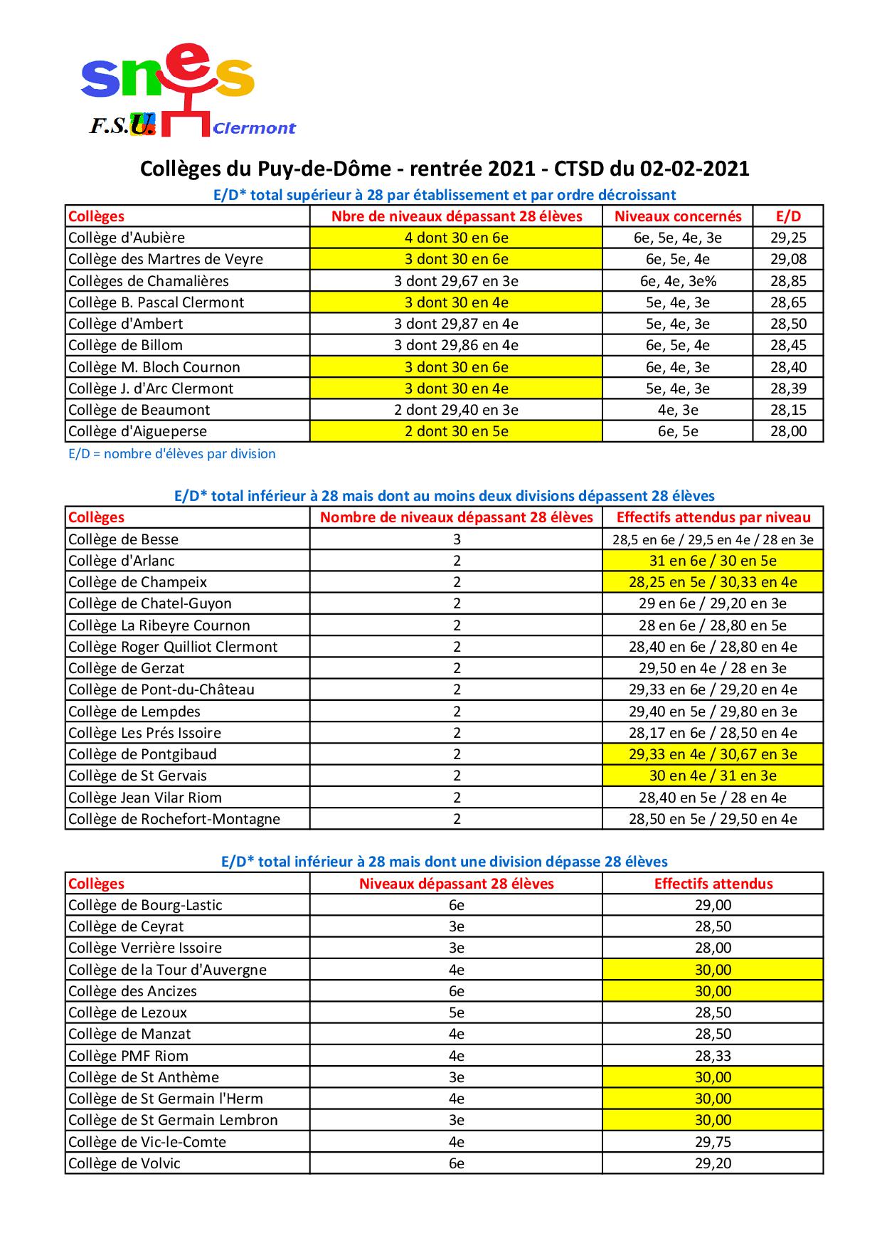 Le CTSD second degré qui s’est tenu ce matin en visio-conférence a examiné les DHG des collèges du Puy-de-Dôme. Le bilan est sans appel :