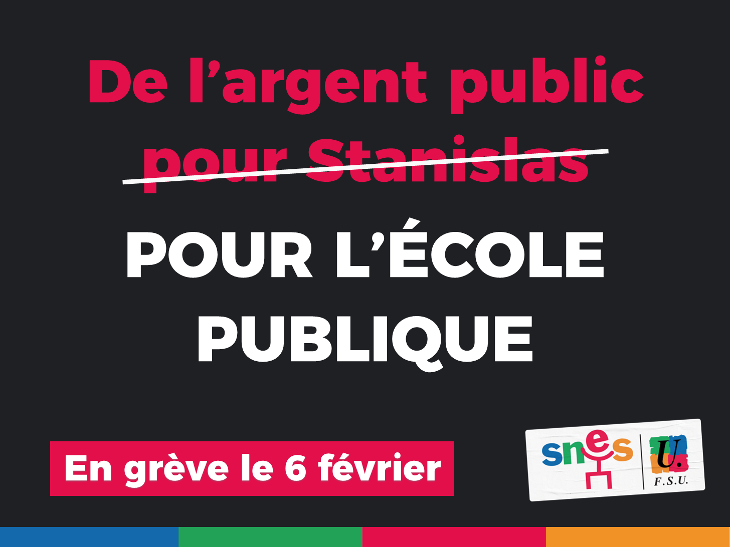 Pour gagner, il faut continuer l’action ! Le SNES-FSU appelle à poursuivre et amplifier la mobilisation pour nos salaires et contre le choc des savoirs : grève le 6 février, semaine d’actions locales, mobilisation pour l’Ecole publique au printemps.