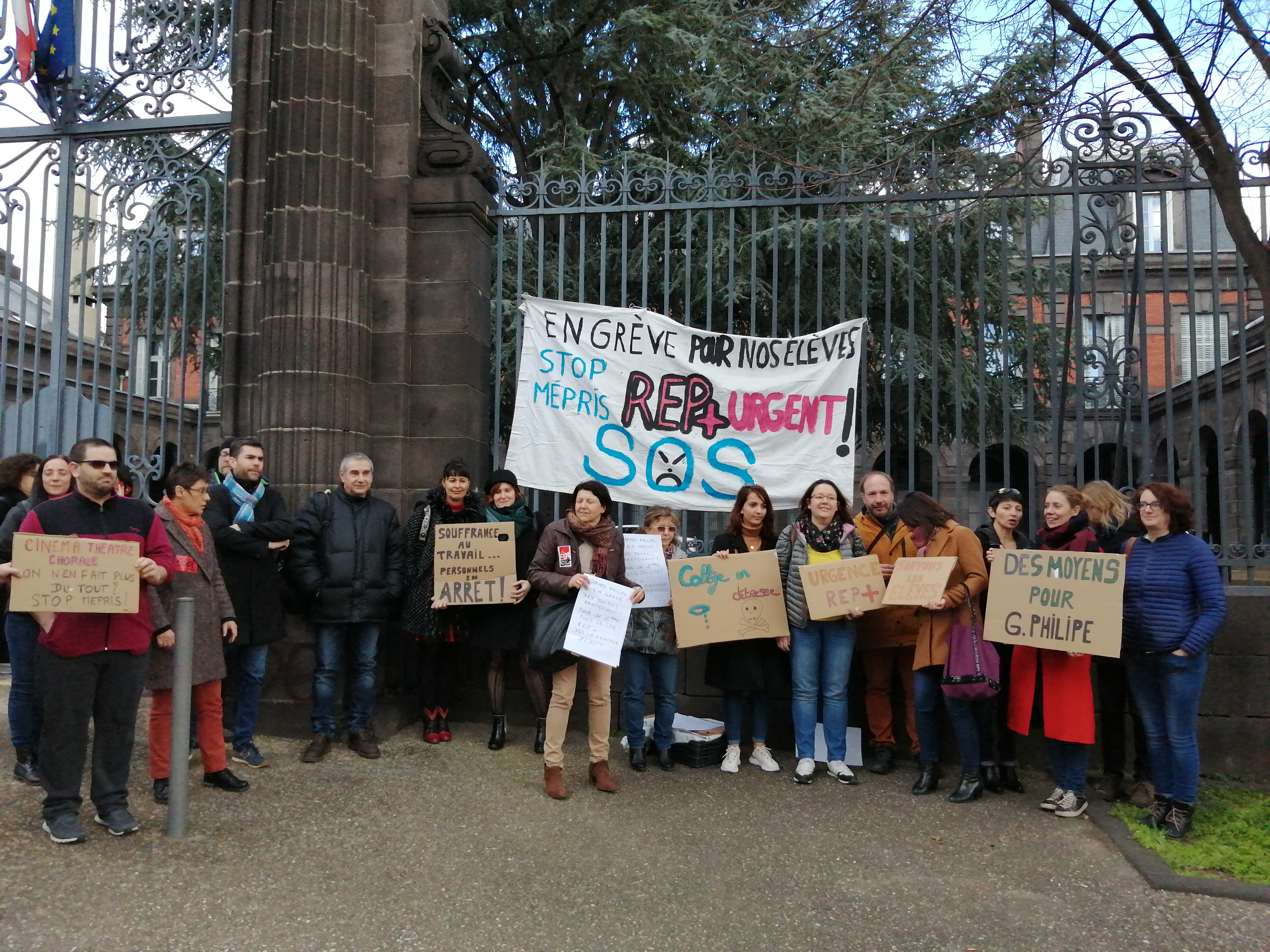 Suite à plusieurs agressions verbales ou physiques survenues ces derniers mois, 30 personnels de l’établissement se sont mis en grève mardi 18 février et se sont rassemblés devant les grilles du collège. Ils demandent la création d’un poste de Cpe, des postes supplémentaires en Aed et en Aesh, des moyens en heures d’enseignement pour pouvoir financer les options Lsf, cinéma, théâtre, chorale, et l’entrée en Rep + dès la rentrée 2020. Mercredi 19, les équipes mobiles de sécurité se sont rendues dans l’établissement. Cela ne répond en rien aux attentes des personnels.