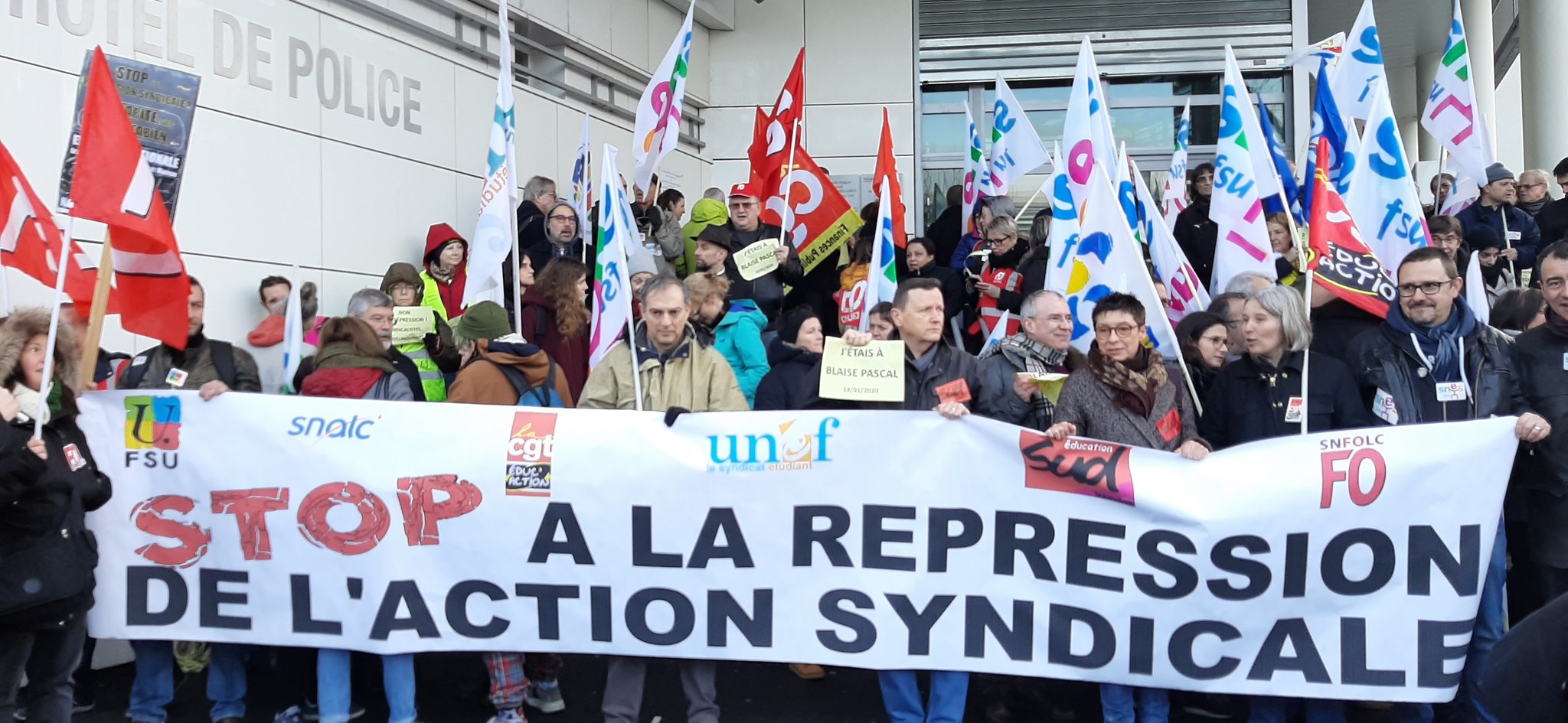 Environ 150 personnes se sont rassemblées mardi 11 février devant le commissariat, avenue de la République, à Clermont en soutien aux militants syndicaux du SNES-FSU convoqués suite à l’action du 18 février au lycée Blaise Pascal.