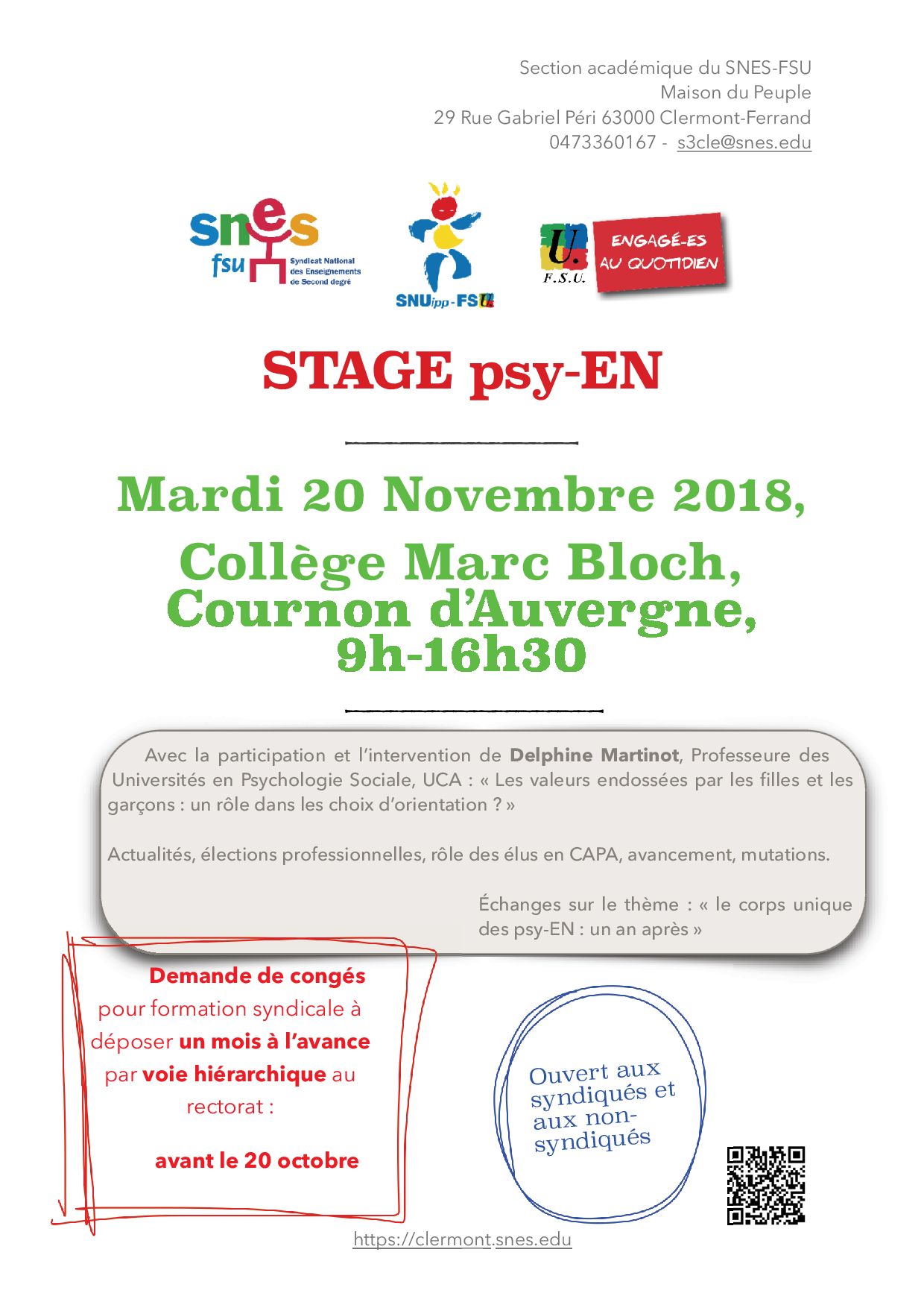 Le SNES-FSU et le SNUIpp-FSU vous invitent à une journée académique de formation syndicale